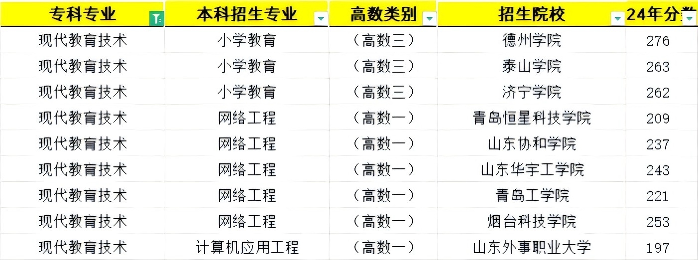 山东专升本专科现代教育技术专业对应可报考的本科学校和专业汇总