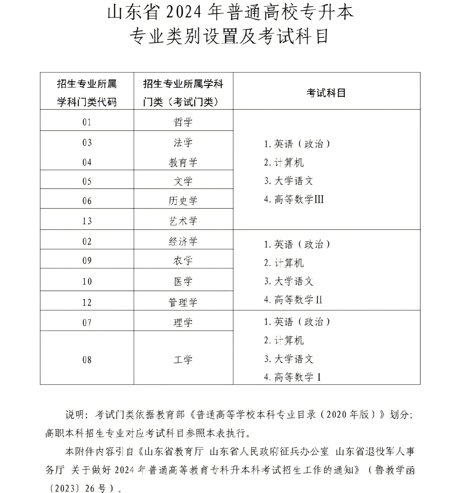 山东专升本考试科目